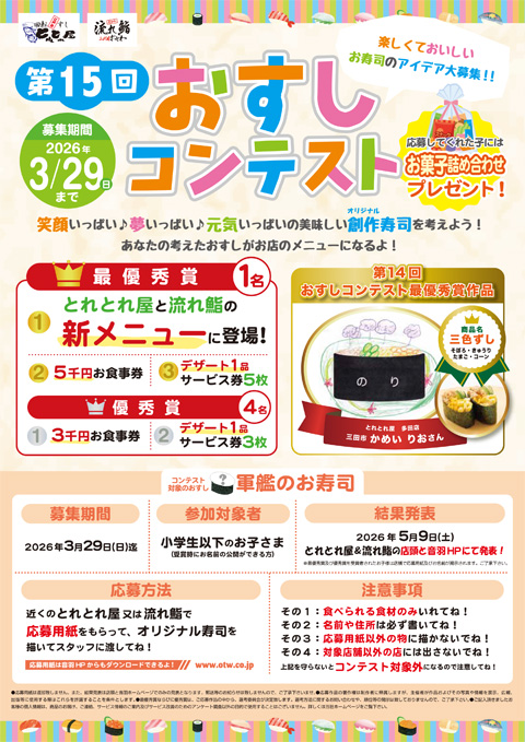 流れ鮨・とれとれ屋「第15回 おすしコンテスト」アイデア募集中!